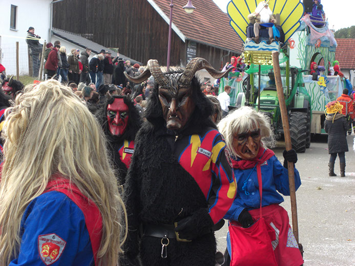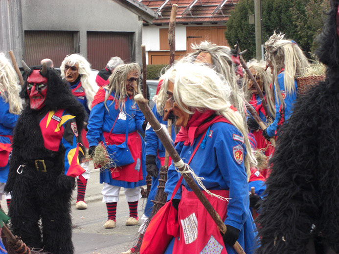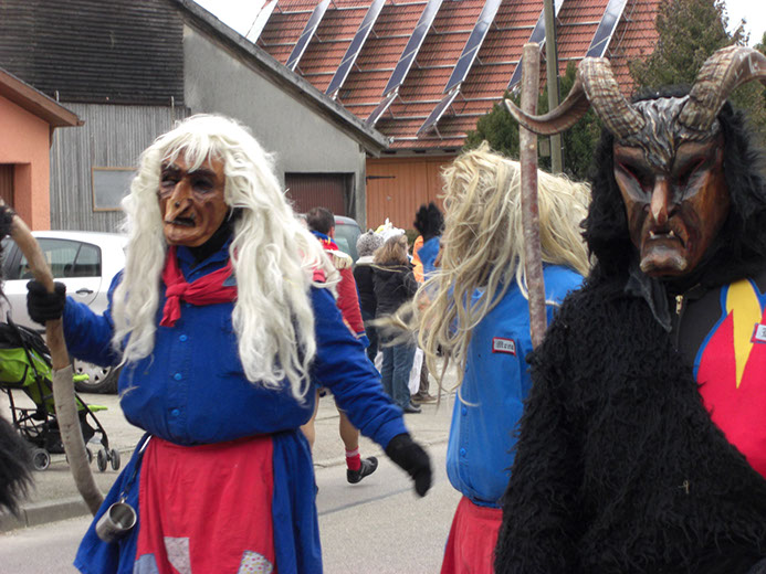 Die Fasnacht hat also im Laufe der Jahrhunderte in der Tat eine zunehmende Sinnentleerung bzw. Sinnverschiebung erfahren, vom verlorenen Wissen um Symbole, Attribute sowie allegorische Motive, die nur im Kontext der christlichen Sinngebung zu verstehen sind, bis hin zur Wechselbeziehung zwischen Fasnacht und Fastenzeit, die gerade in den letzten Jahrzehnten immer mehr in den Hintergrund getreten ist. Dadurch entstand zugleich Raum für Deutungen, die die Wurzeln der Fasnacht in germanisch-mythologischen Fruchtbarkeits- und Winteraustreibungsritualen sehen wollen, obwohl es für einen derartigen Ansatz kaum Belege gibt. Nach dem Grund ihres närrischen Tuns befragt, wird dennoch auch von vielen Aktiven heute immer noch diese These vertreten. Doch wie dem auch sei - wer sollte auch heute noch ernsthaft den Winter austreiben wollen, in einer Zeit mit Wintern, die diese Bezeichnung oft gar nicht mehr verdienen, in der die meisten Menschen hierzulande längst nicht mehr den Unbilden des Wetters in dem Maße ausgesetzt sind, wie dies früher oft der Fall war, als die Menschen mit der kalten, unwirtlichen Jahreszeit und ihren langen, unheimlichen Nächten das Wirken von finsteren Mächten und Dämonen verbanden?
