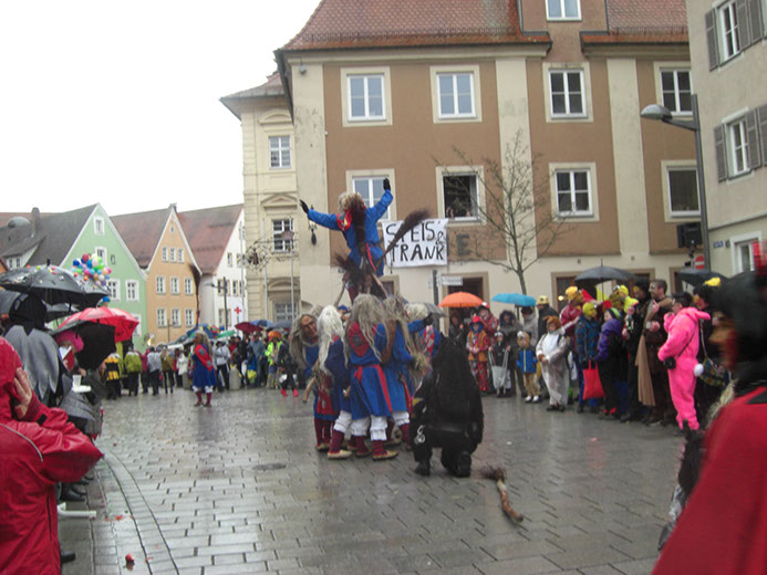 So läßt sich schlagwortartig die heutige Wesensart der Fasnacht umreißen - doch beim näheren Hinsehen kann man feststellen, dass die Fasnacht auch heute noch ein symbolbefrachtetes Brauchfest ist, wenn auch den meisten Aktiven und Zuschauern der ursprüngliche, tiefere Sinngehalt sowie die überkommene Symbolik verschlossen bleibt und die Ansicht weit verbreitet ist, die Fasnacht habe ihren Ursprung in heidnischen Fruchtbarkeits- und Winteraustreibungsritualen1). Dies wird jedoch, zumindest was die Kontinuität der Brauchtradition anbelangt, durch die Ergebnisse der jüngeren Fastnachtsforschung widerlegt, die die Wurzeln im christlichen Kontext, zurückreichend bis ins späte Mittelalter, sieht, ohne den damaligen Rückgriff auf bestimmte vorchristliche Festbräuche, wie z.B. die römischen Saturnalien, durchweg abstreiten zu wollen2).