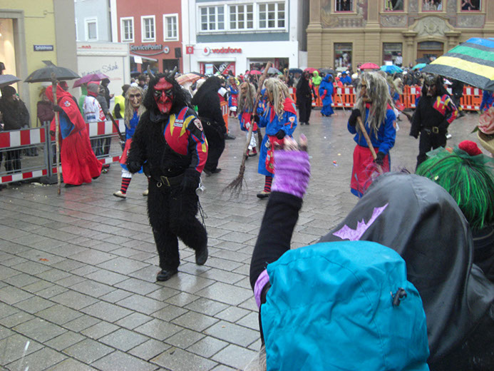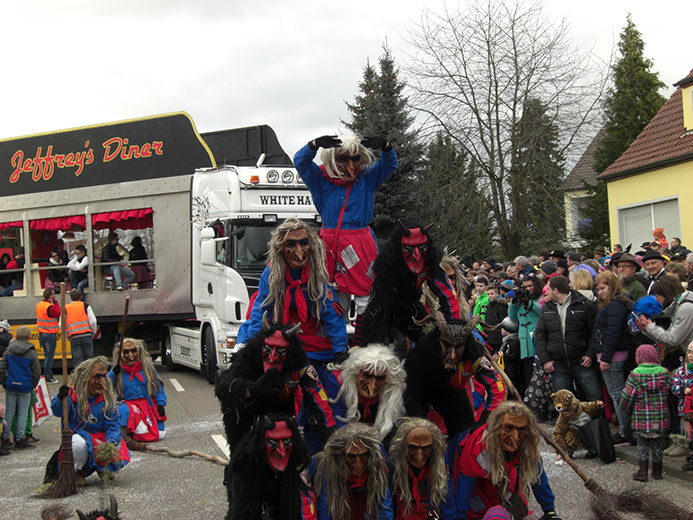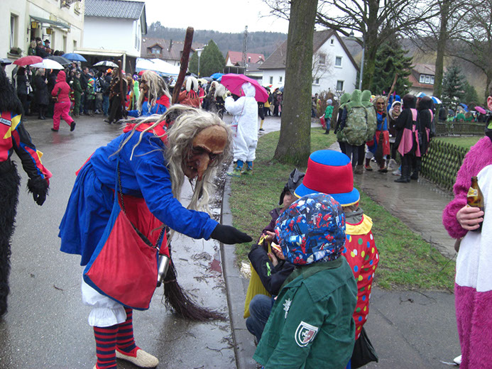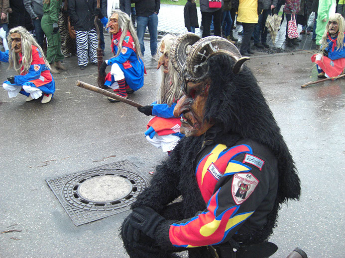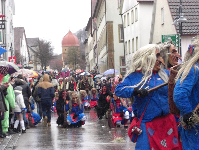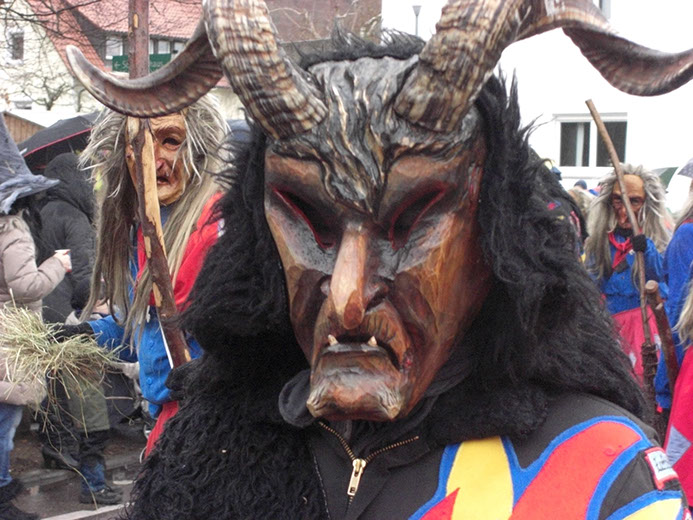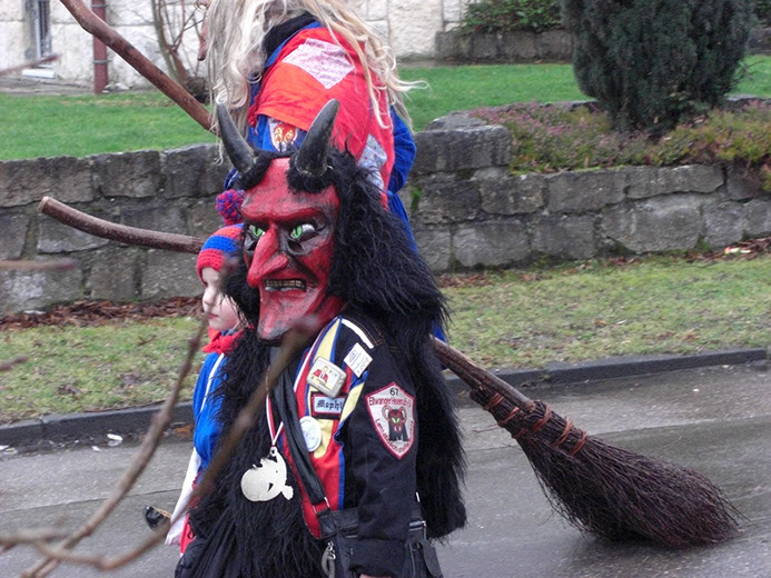 Die Fasnacht hat also im Laufe der Jahrhunderte in der Tat eine zunehmende Sinnentleerung bzw. Sinnverschiebung erfahren, vom verlorenen Wissen um Symbole, Attribute sowie allegorische Motive, die nur im Kontext der christlichen Sinngebung zu verstehen sind, bis hin zur Wechselbeziehung zwischen Fasnacht und Fastenzeit, die gerade in den letzten Jahrzehnten immer mehr in den Hintergrund getreten ist. Dadurch entstand zugleich Raum für Deutungen, die die Wurzeln der Fasnacht in germanisch-mythologischen Fruchtbarkeits- und Winteraustreibungsritualen sehen wollen, obwohl es für einen derartigen Ansatz kaum Belege gibt. Nach dem Grund ihres närrischen Tuns befragt, wird dennoch auch von vielen Aktiven heute immer noch diese These vertreten. Doch wie dem auch sei - wer sollte auch heute noch ernsthaft den Winter austreiben wollen, in einer Zeit mit Wintern, die diese Bezeichnung oft gar nicht mehr verdienen, in der die meisten Menschen hierzulande längst nicht mehr den Unbilden des Wetters in dem Maße ausgesetzt sind, wie dies früher oft der Fall war, als die Menschen mit der kalten, unwirtlichen Jahreszeit und ihren langen, unheimlichen Nächten das Wirken von finsteren Mächten und Dämonen verbanden?