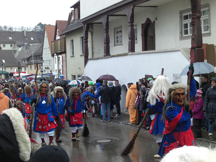 Während im rheinischen Karneval ausgelassene, überschäumende Fröhlichkeit das närrische Treiben beherrscht und nebenbei noch vor allem die Politik in ironisch-sarkastischer Weise durch den Kakao gezogen wird, kennt die schwäbisch-alemannische Straßenfasnacht neben der heiteren auch noch eine andere, manchmal sogar "tod"-ernste Seite, bei der der christliche Ursprung der Fasnacht auch heute noch teilweise zum Tragen kommt.