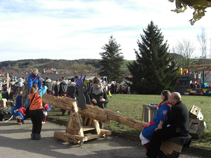 So läßt sich schlagwortartig die heutige Wesensart der Fasnacht umreißen - doch beim näheren Hinsehen kann man feststellen, dass die Fasnacht auch heute noch ein symbolbefrachtetes Brauchfest ist, wenn auch den meisten Aktiven und Zuschauern der ursprüngliche, tiefere Sinngehalt sowie die überkommene Symbolik verschlossen bleibt und die Ansicht weit verbreitet ist, die Fasnacht habe ihren Ursprung in heidnischen Fruchtbarkeits- und Winteraustreibungsritualen1). Dies wird jedoch, zumindest was die Kontinuität der Brauchtradition anbelangt, durch die Ergebnisse der jüngeren Fastnachtsforschung widerlegt, die die Wurzeln im christlichen Kontext, zurückreichend bis ins späte Mittelalter, sieht, ohne den damaligen Rückgriff auf bestimmte vorchristliche Festbräuche, wie z.B. die römischen Saturnalien, durchweg abstreiten zu wollen2).